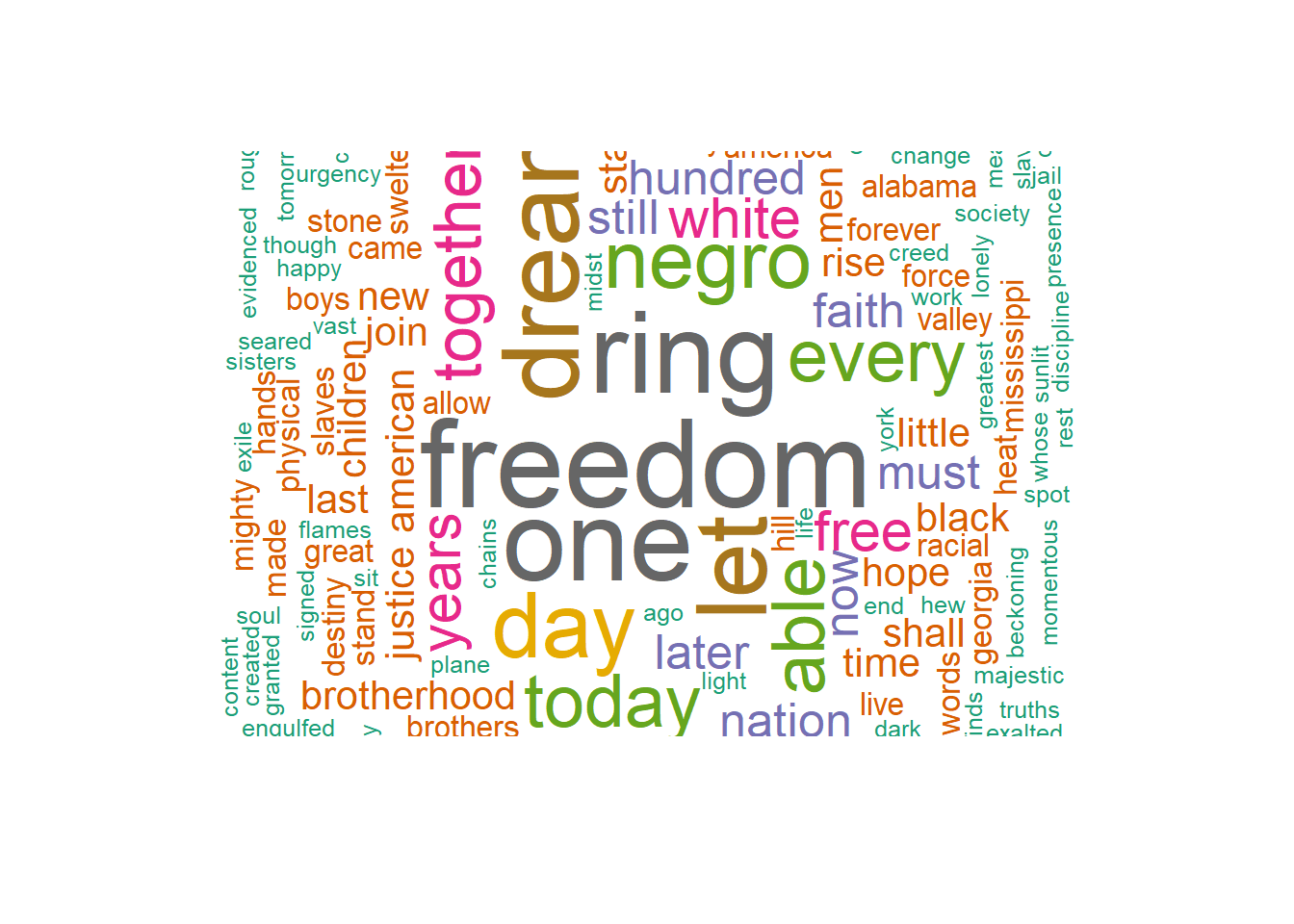 [1] "I am happy to join with you today in what will go down in\r\nhistory as the greatest demonstration for freedom in the history\r\nof our nation. "